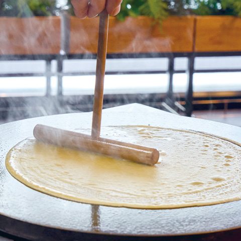 ホテリエが目の前で焼き上げるクレープを、自分好みにアレンジしてお楽しみいただけるコーナーもご用意いたします。クレープのアレンジには、ぜひお一人様カップ1杯までお取りいただける「フレッシュいちご」を添えてお召し上がりください。