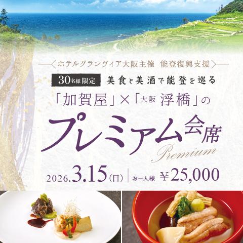 和倉温泉の老舗旅館「加賀屋」の総料理長である宇小氏と、ホテルグランヴィア大阪の日本料理「大阪 浮橋」の料理長の山田がつくりあげるコラボレーション料理とペアリングドリンクをご堪能いただけるイベントを、 2026 年 3 月 15 日(日)に開催いたします。